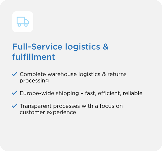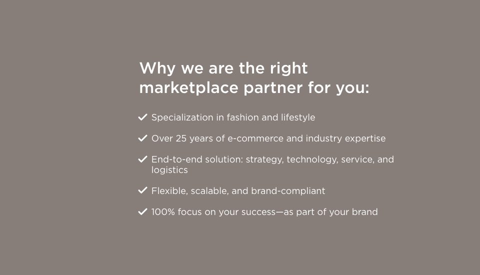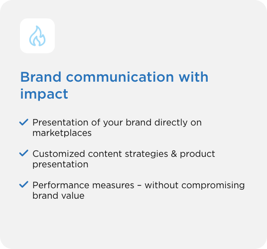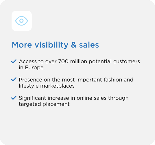your brand to marketplaces such as Zalando, Amazon, Otto & Co. – data-driven, brand-appropriate, and scalable.